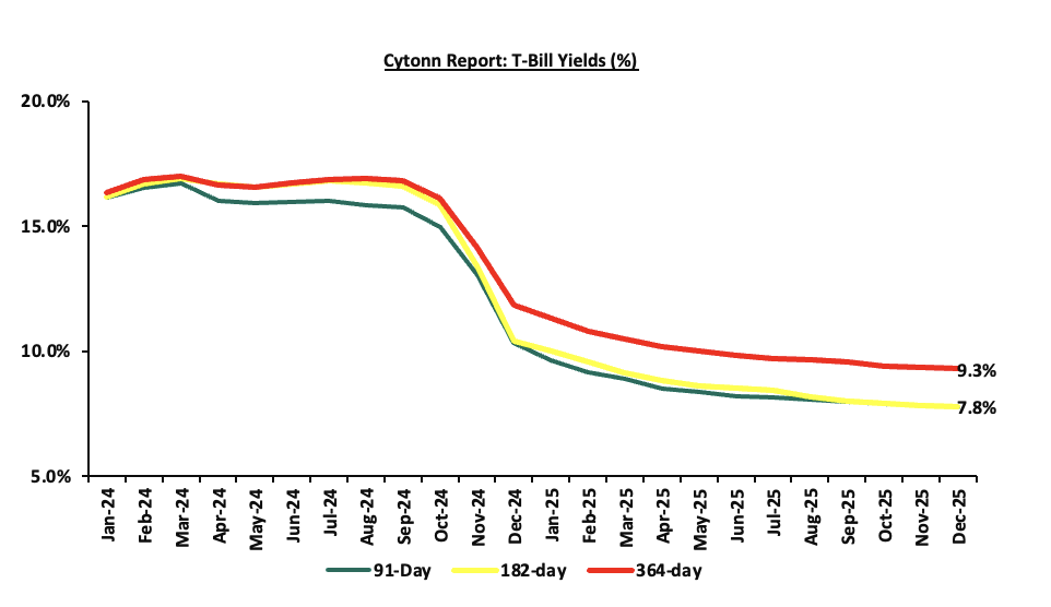 The charts below show the performance of the 91-day, 182-day and 364-day papers from January 2024 to December 2025: