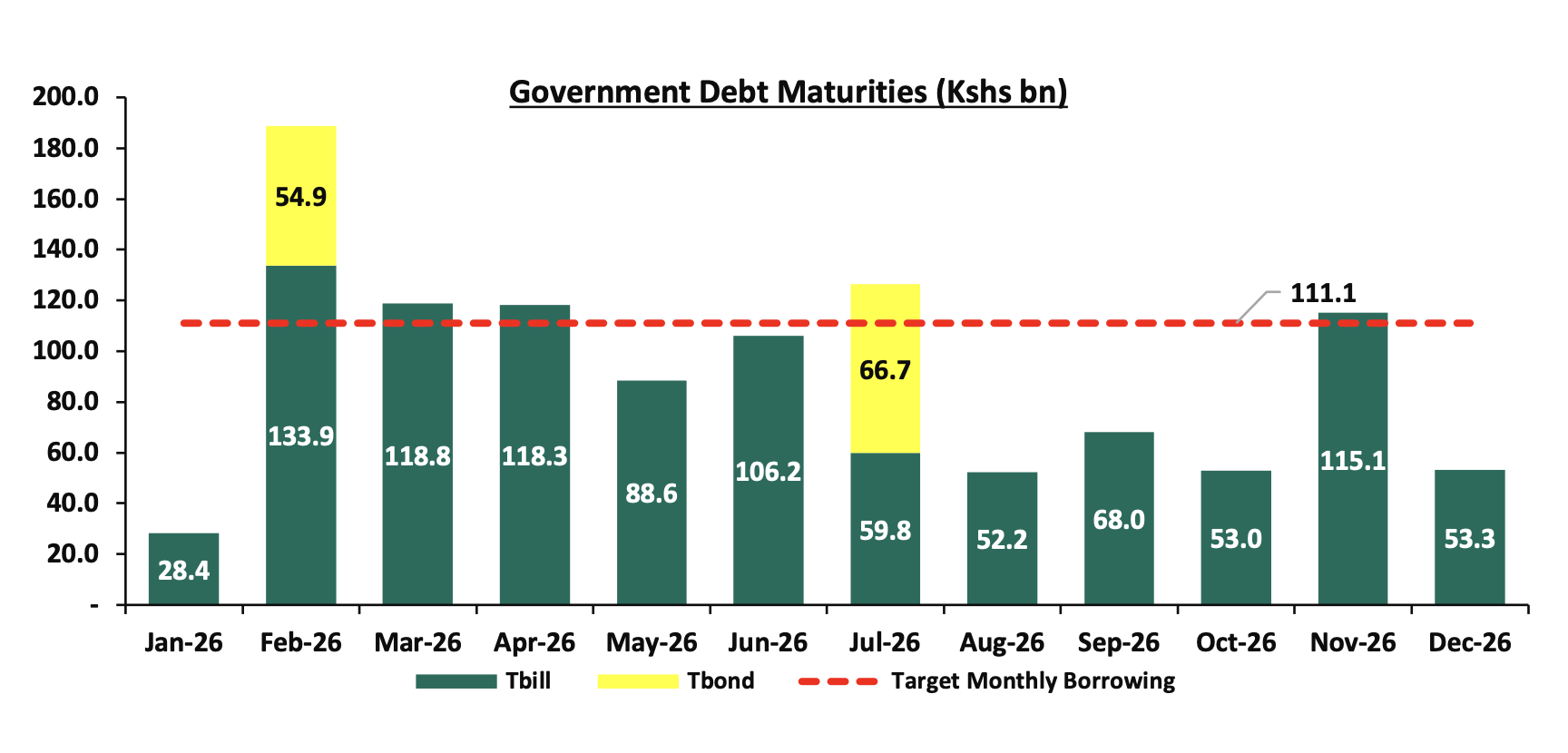 Government borrowing – Our outlook for 2026 is Negative on Government Borrowing. We expect the government to borrow aggressively from both the domestic and foreign markets to plug in the fiscal deficit, which is projected to come in at Kshs 923.2 bn, equivalent to 4.8% of the GDP. On revenue collection, we expect continued improvement in 2026 due to the raft of measures the administration has put in place to boost tax collection such implementation of the Finance Act 2025which is geared towards expanding the tax base and increasing revenues through sealing revenue leakages to meet the government’s budget for the fiscal year 2025/2026 of Kshs 4.2 tn, as well as reduce the budget deficit and borrowing;