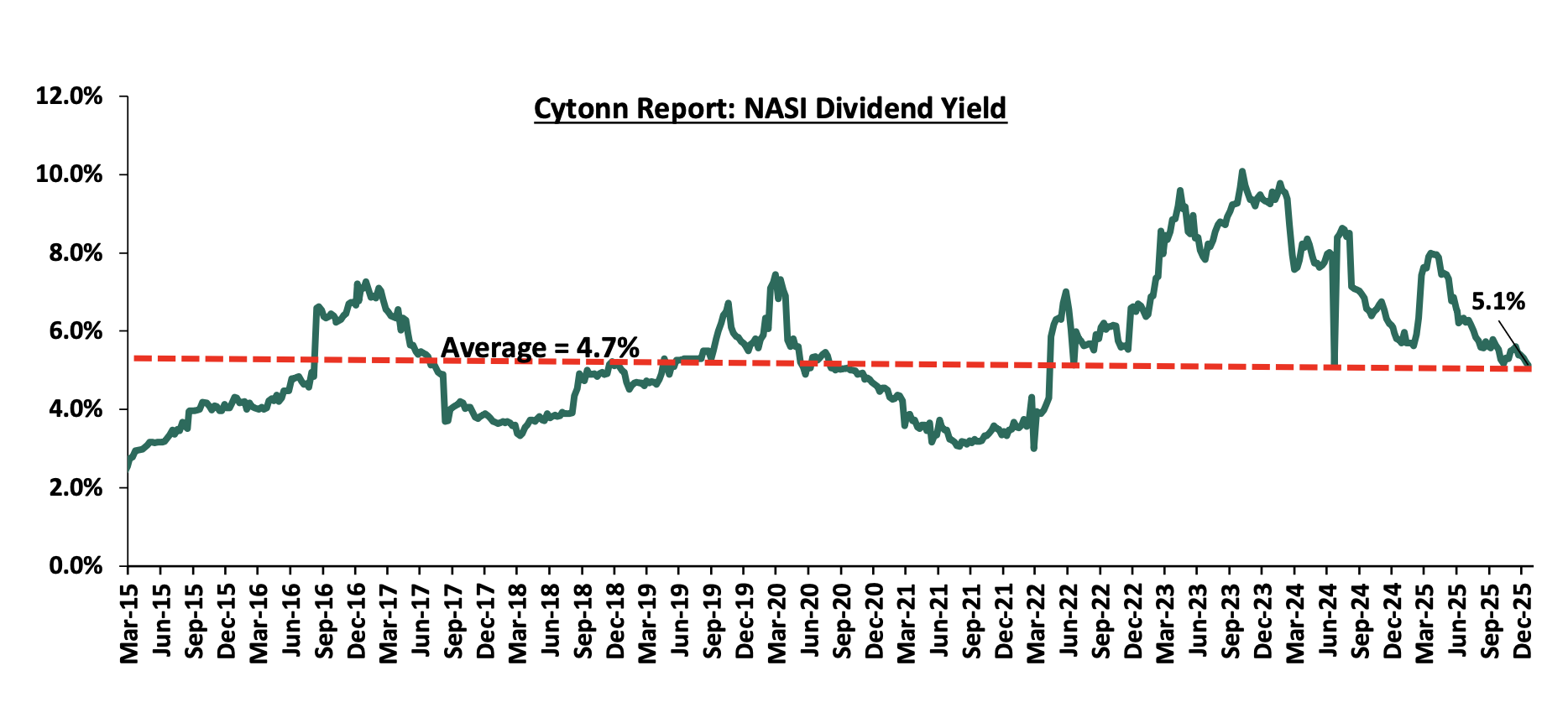 We have a BULLISH outlook on the Kenyan Equities market in the short term but “NEUTRAL” in the medium to long term. We expect a continued improvement in the listed sector’s earnings growth in 2026, largely driven by the expected 5.2%-5.5% GDP growth, decreased yields in the fixed income markets and the improvement of the country’s business environment. The business environment showed signs of improvement in the last quarter of 2025, with the Purchasing Manager’s Index (PMI) averaging at 53.7 in Q4’2025, higher than the year’s average of 51.0. Additionally, the Kenyan currency appreciated against the major select currencies, gaining 0.2% against the USD dollar in 2025 indicating a stability. Strong foreign investor inflows expected in the early weeks of the year may, further, support and accelerate the growth of the equities market in the short term