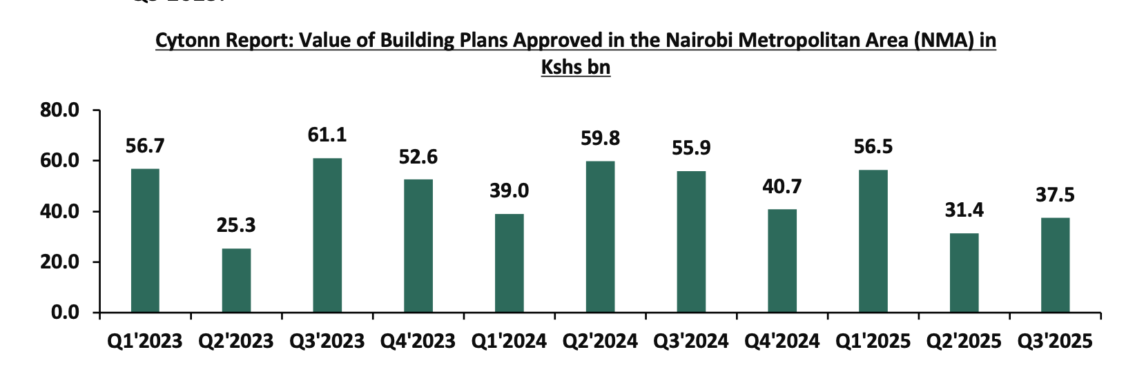 The chart below shows the building plans approved in billions in Kenya between Q1’2023 and Q3’2025.