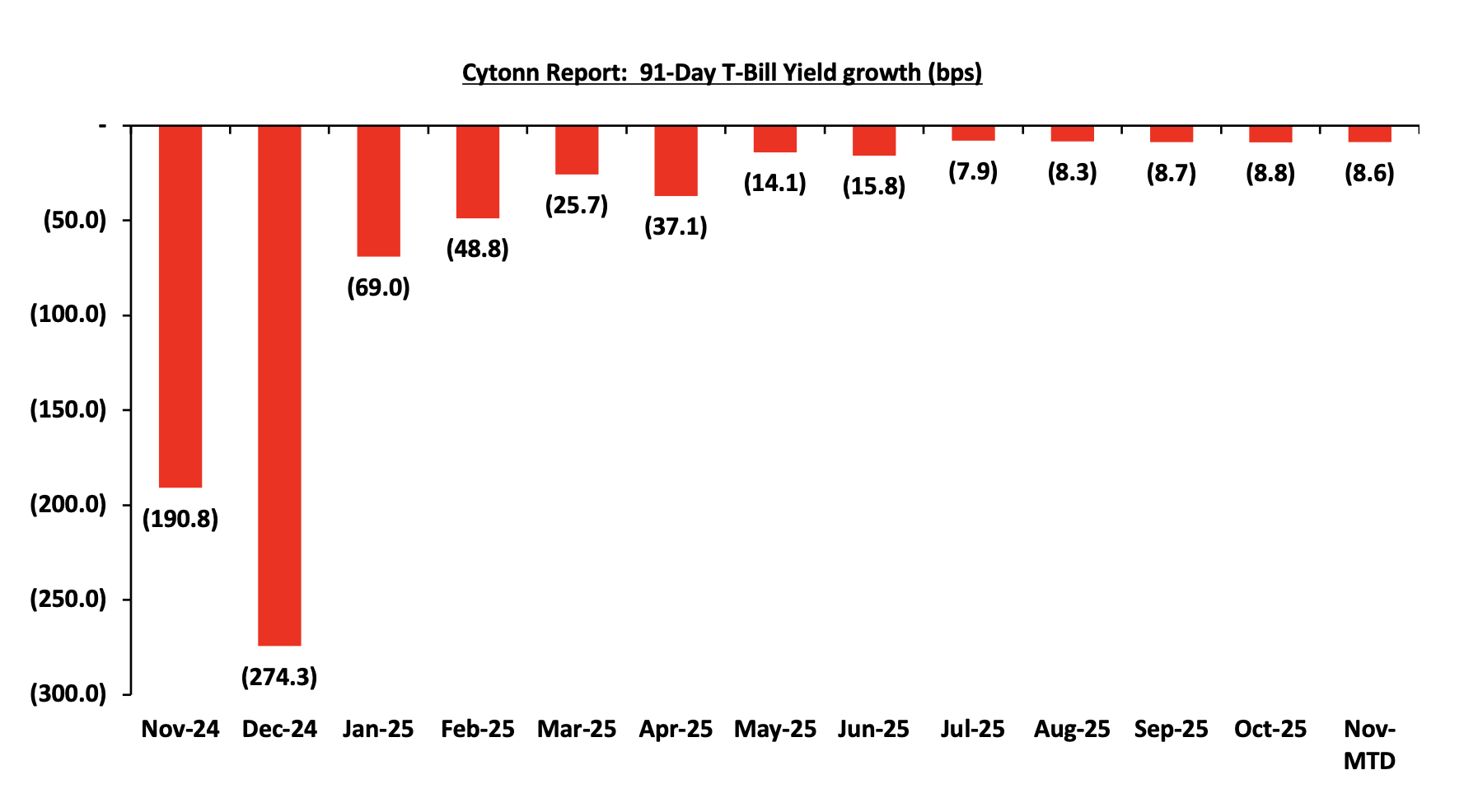 The charts below show the performance of the 91-day, 182-day and 364-day papers from January 2024 to November 2025: