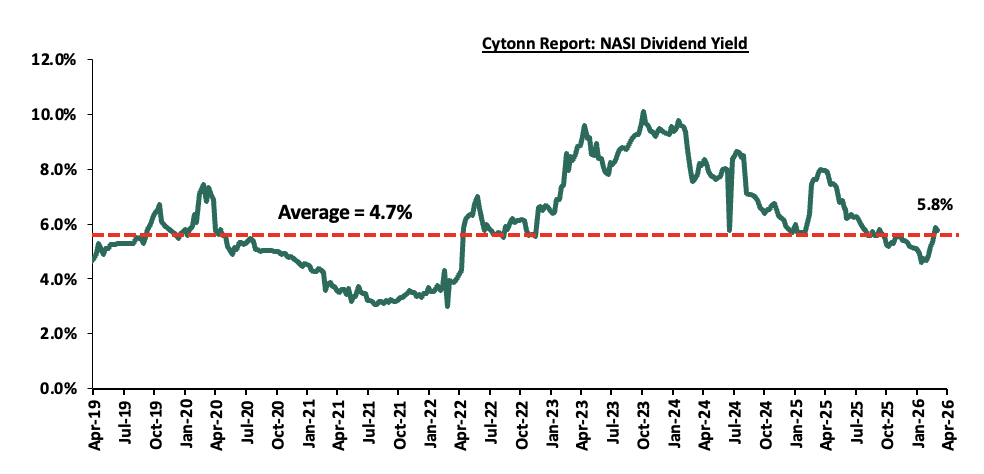 During Q1’2026, the equities market was on an upward trajectory, with NSE 20, NSE 25, NASI, and NSE 10 gaining by 9.3%, 6.3%, 4.4%, and 3.3%, respectively. The equities market performance during the quarter was driven by gains recorded by large caps such as Stanbic, DTB-K and BAT of 30.0%, 27.5%, and 23.1% respectively. The gains were however weighed down by losses recorded by large cap stocks such as EABL and Safaricom of 4.6% and 3.0% respectively;