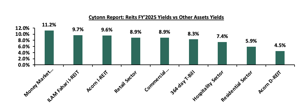 On the Unquoted Securities Platform Acorn D-REIT and I-REIT traded at Kshs 27.4 and Kshs 23.2per unit, respectively, as per the last updated data on 2nd April 2026. The performance represented a 33.4% and 14.5% gain for the D-REIT and I-REIT, respectively, from the Kshs 20.0 inception price. The volumes traded for the D-REIT and I-REIT came in at 13.4 mn and 42.2 mn shares, respectively. Additionally, ILAM Fahari I-REIT traded at Kshs 11.0 per share as of 13th March, representing a 45.0% loss from the Kshs 20.0 inception price. The volume traded to date came in at 1.2 mn shares for the I-REIT, REITs offer various benefits, such as tax exemptions, diversified portfolios, and stable long-term profits. However, the ongoing decline in the performance of Kenyan REITs and the restructuring of their business portfolios are hindering significant previous investments. Additional general challenges include: