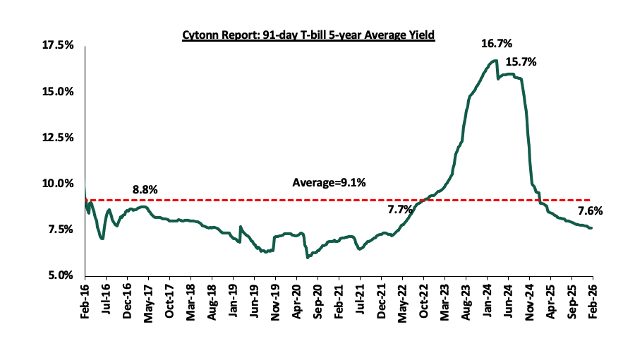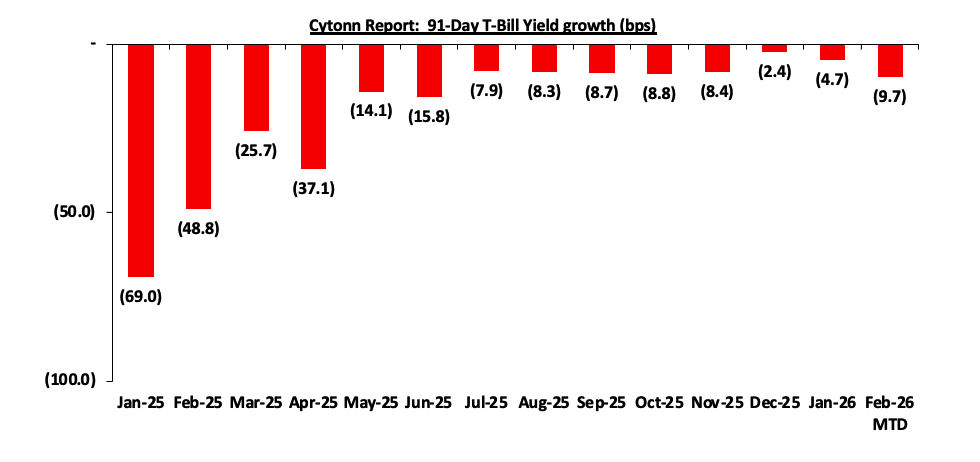 The charts below show the performance of the 91-day, 182-day and 364-day papers from January 2025 to February2026