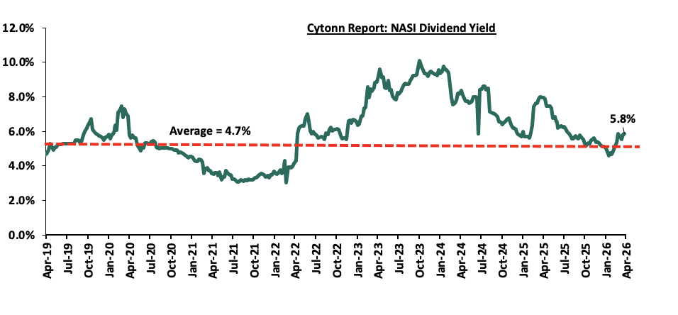 In the primary bond market, the government re-opened three bonds FXD1/2012/020, FXD1/2019/020 and FXD1/2021/025 seeking to raise Kshs 80.0 bn for budgetary support. The bonds, FXD1/2012/020, FXD1/2019/020 and FXD1/2021/025, have fixed coupon rates of 12.0% and 12.9% and 13.9% respectively and tenors to maturity of 6.6 years, 13.0 years and 20.1 years respectively. The period of sale for the three bonds opened on Thursday 23rd April 2026 and will close on Wednesday 6th May 2026. Our bidding ranges for the FXD1/2012/020, FXD1/2019/020 and FXD1/2021/025 is 11.75%-12.25%, 12.5%-13.0% and 13.5%-14.0% respectively.