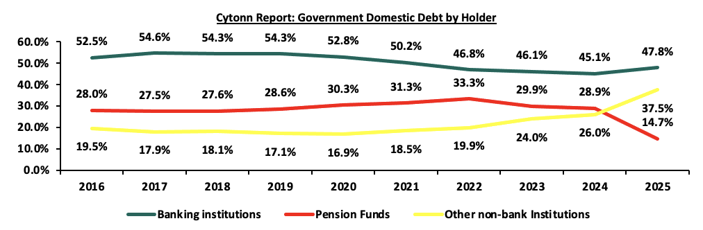 Additionally, as of December 2025 commercial banks held an average of 47.8% of this domestic debt, lowering the risk of crowding out the private sector, as banks are now reducing their lending to the government and prioritizing private businesses. The chart below highlights the distribution of government debt holdings across various institutions;