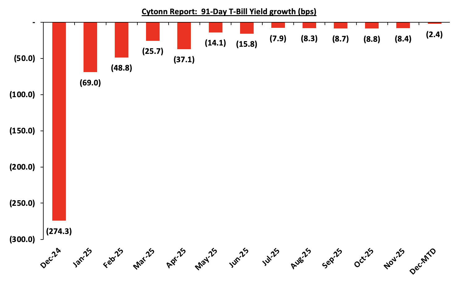 The chart below shows the yield growth rate for the 91-day paper from December 2024 to December month-to-date: