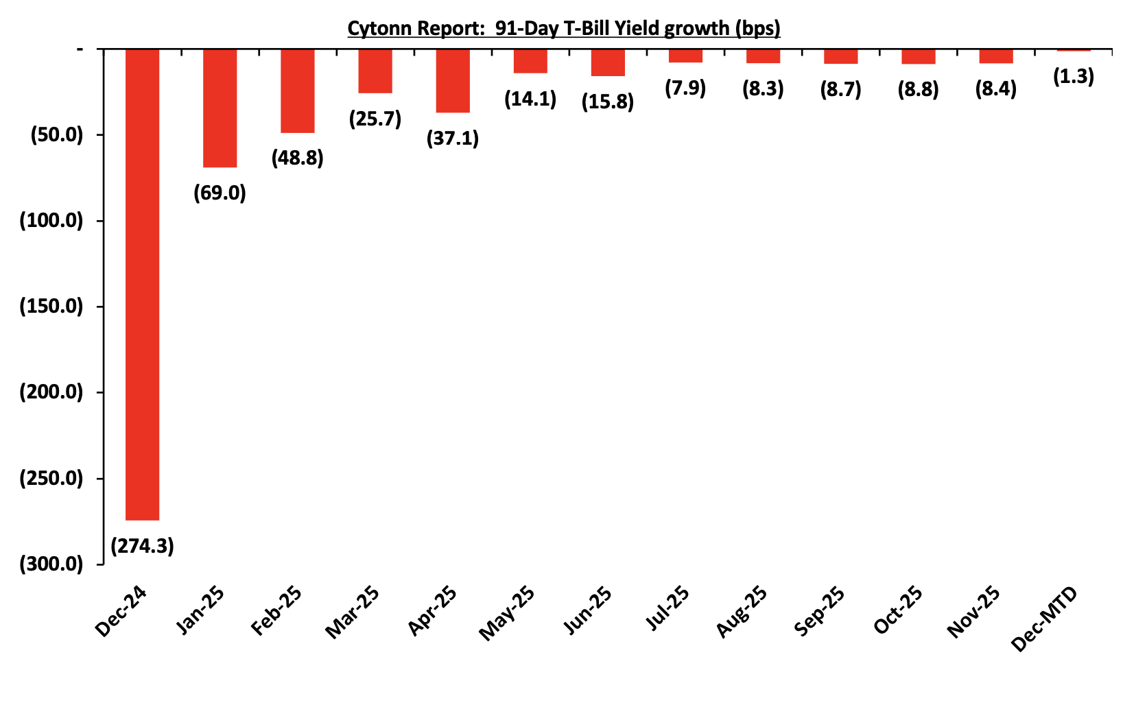The chart below shows the yield growth rate for the 91-day paper from December 2024 to December month-to-date:
