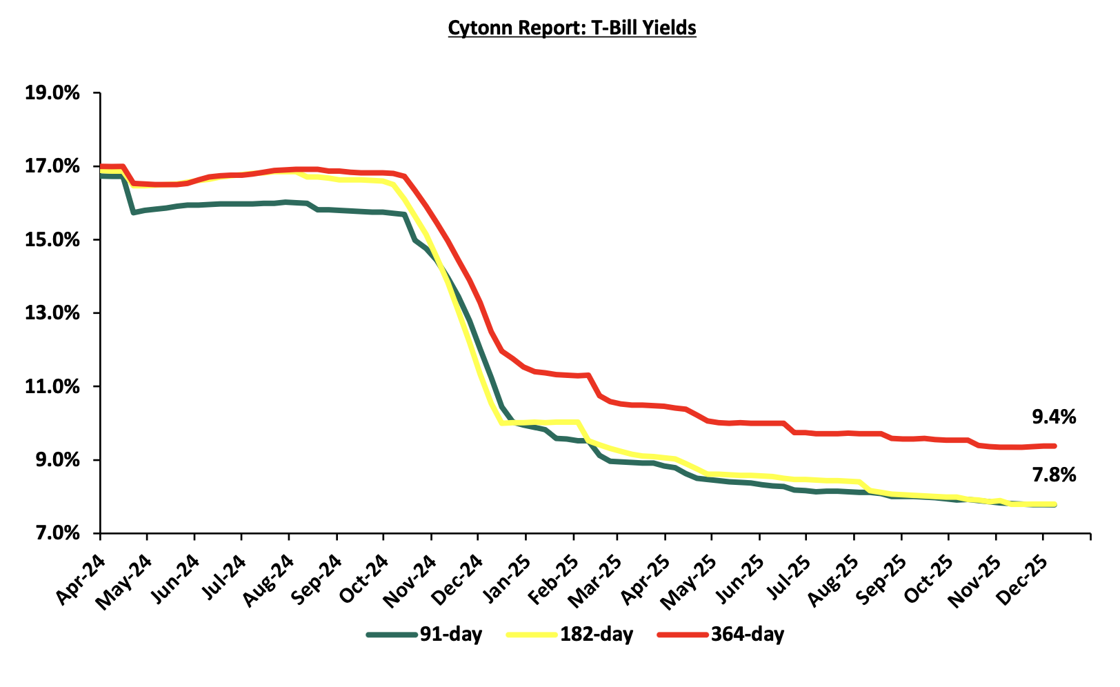 The charts below show the performance of the 91-day, 182-day and 364-day papers from January 2024 to December 2025: