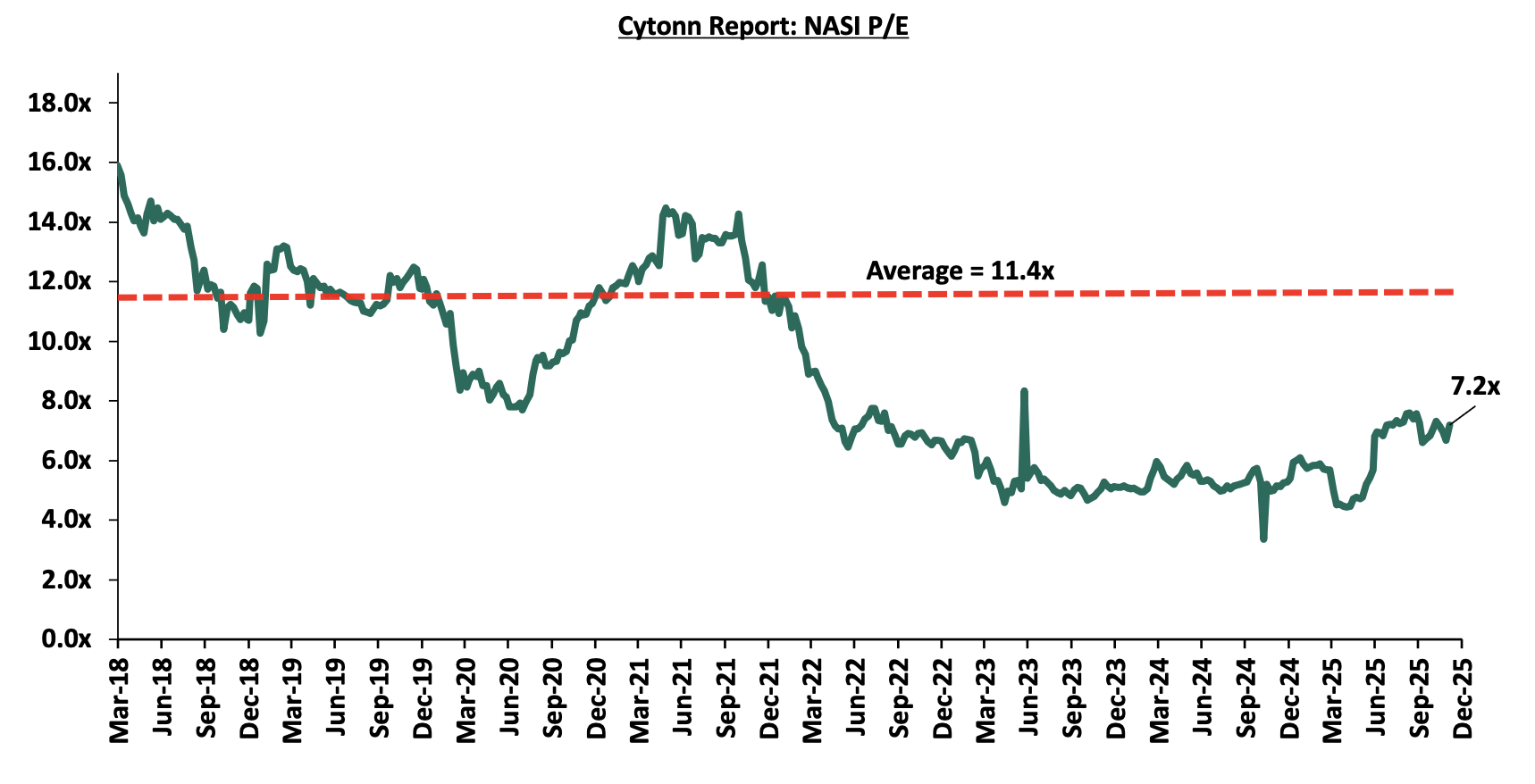During the week, the equities market was on a downward trajectory, with NSE 20, NSE 25, NASI and NSE 10 declining by 2.8%, 1.0%, 0.8% and 0.7% respectively, taking the YTD performance to gains of 44.8%, 43.3%, 38.3% and 38.0% of NSE 20, NASI, NSE 10 and NSE 25 respectively. The equities market performance was mainly driven by losses recorded by large-cap stocks such as NCBA, KCB and Equity, of 7.8%, 4.3% and 2.8% respectively. The performance was, however, supported by gains by large cap stocks such as Stanbic, EABL and Absa of 7.1%, 1.6% and 0.9% respectively;