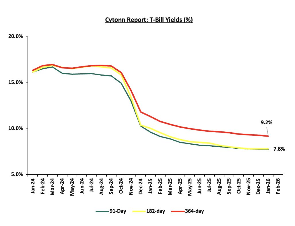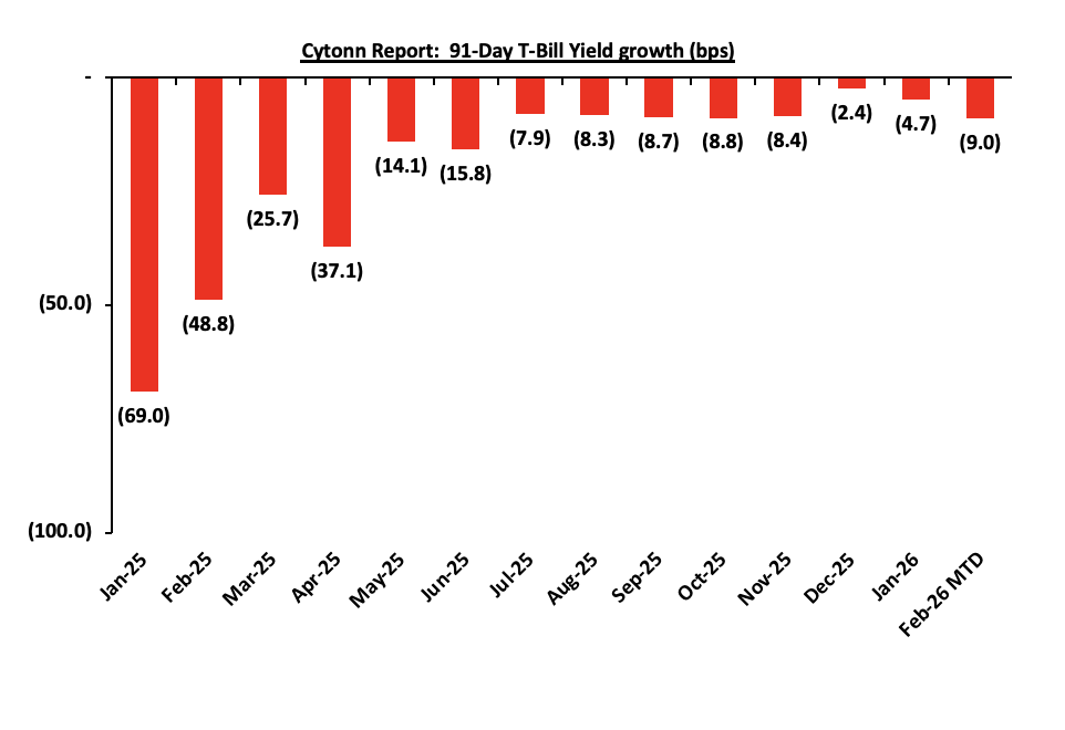 The charts below show the performance of the 91-day, 182-day and 364-day papers from January 2024 to February 2026: