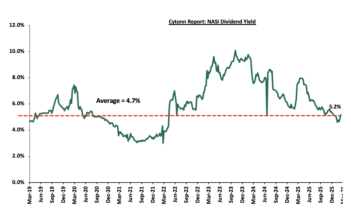 During the week, Liberty Kenya Holdings released their FY’2025 results, highlighting that the Profit After Tax decreased by 51.9% to Kshs 0.7 bn, from the Kshs 1.4 bn recorded in FY’2024. The performance was mainly driven by 55.1% decrease in net insurance service revenue to Kshs 0.5 bn in FY’2025, from Kshs 1.1 bn in FY’2024, coupled with 23.0% decrease in net investment revenue to Kshs 1.7 bn, from Kshs 2.1 bn in FY’2024;