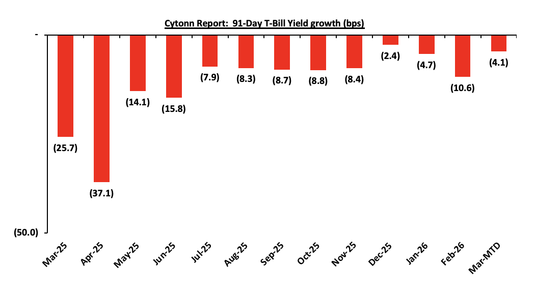 The charts below show the performance of the 91-day, 182-day and 364-day papers from March 2025 to March 2026