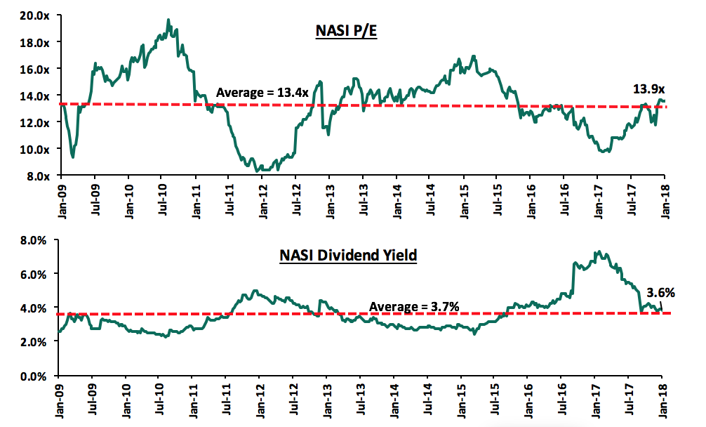 The Kenyan equities market is expected to maintain the upward trend during the year 2018, driven by stronger investor sentiment due to (i) expected improvement in corporate earnings growth, (ii) heightened regulation in listed entities following major regulatory changes in 2017, especially with regards to corporate governance, and (iii) strong economic growth. Market valuation is currently at historical averages but pockets of value still exist, with a number of undervalued sectors such as financial services. With expectations of higher corporate earnings this year, the market is attractive for long-term investors;