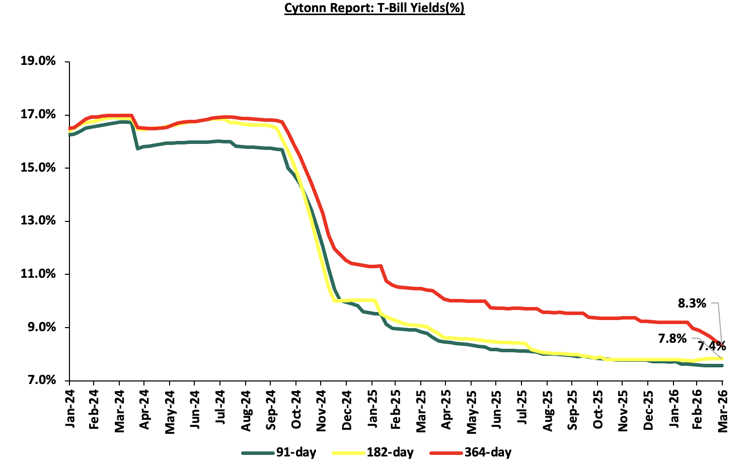 The charts below show the performance of the 91-day, 182-day and 364-day papers from March 2025 to March 2026