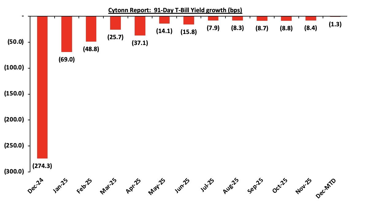 The chart below shows the yield growth rate for the 91-day paper from December 2024 to December month-to-date: