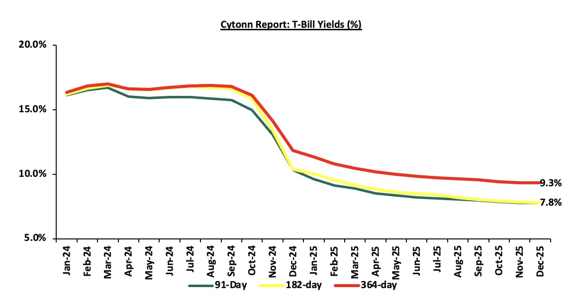 The charts below show the performance of the 91-day, 182-day and 364-day papers from January 2024 to December 2025:
