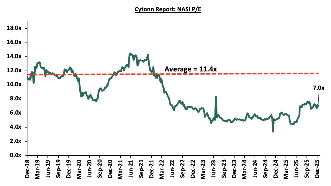 During the week, the equities market showed mixed performance, with NSE 25 gaining by 0.1% while NASI, NSE 20 and NSE 10 declined by 1.1%, 0.9%, and 0.5% respectively, taking the YTD performance to gains of 43.5%, 41.7%, 38.1% and 37.6% of NSE 20, NASI, NSE 25 and NSE 10 respectively. The equities market performance was mainly driven by gains recorded by large cap stocks such as KCB, DTBK and NCBA of 6.2%, 4.5% and 3.6% respectively. The performance was, however, weighed down by losses recorded by large-cap stocks such as Cooperative Bank, Safaricom and Stanbic, of 4.4%, 3.3% and 1.1% respectively;