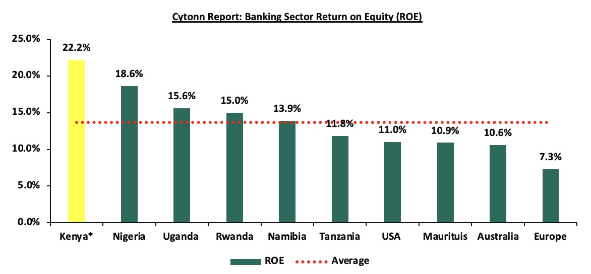 Also, during the week, the banking sector index increased by 0.5% to 190.1 from 189.1 recorded the previous week. This is attributable to gains recorded by stocks such as KCB, DTBK and NCBA of 6.2%, 4.5% and 3.6% respectively. The performance was, however, weighed down by losses recorded by stocks such as Cooperative Bank, Stanbic and Equity of 4.4%, 1.1% and 0.8% respectively;